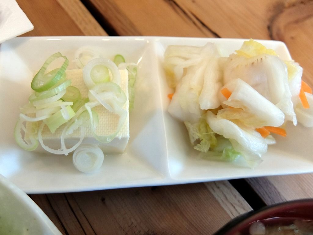 添え物は、お新香どっさりw そして冷奴付き。他には味噌汁と、なんと納豆まで!