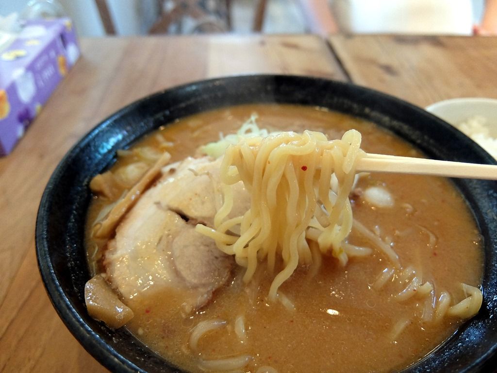 スープはすこしとろみのある優しい味噌味。赤味噌ベースと思われますが、少し甘めで炒め野菜の旨味が溶け出したノスタルジック味噌ラーメンな味わい。初期の頃のどさん娘にチョイ似。味噌ラーメンといえばこれでしょう的な懐かしい味で、とっても美味しい!
