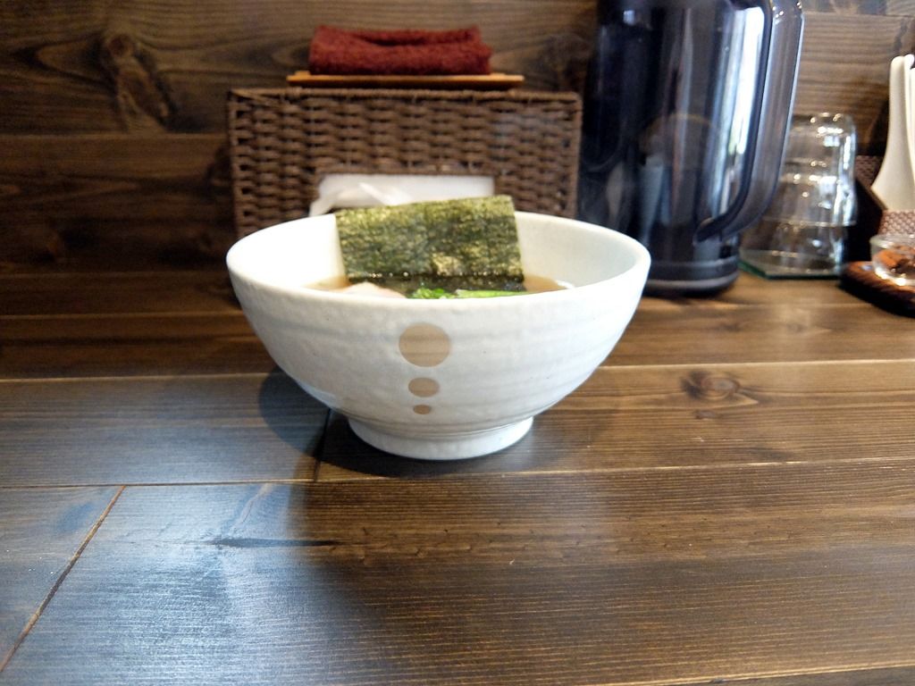 麺は大成食品製で、平打ちで縮れのあるタイプ。モチモチ食感で、麺の旨さは流石の一言!太麺はあっさりスープに勝っちゃうんじゃないかと思いましたが、和風にまとまっていて麺とスープのコンビネーションはバッチリでした!細麺も面白そうですが、やはりオススメはこちらになるでしょうね。旨いです!