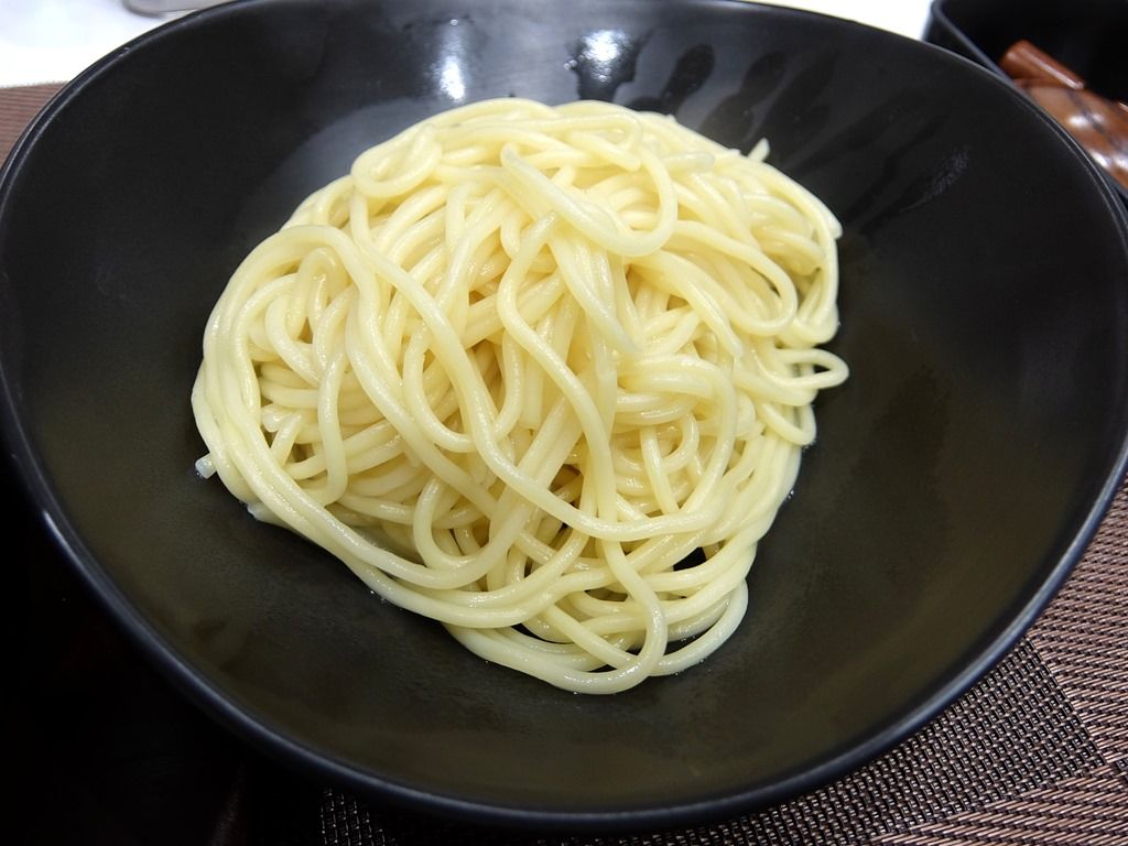 麺は中細ストレートタイプ。見た目・食感共にかなりパスタチック。ですが、パスタの麺とは異なり中華麺とか。