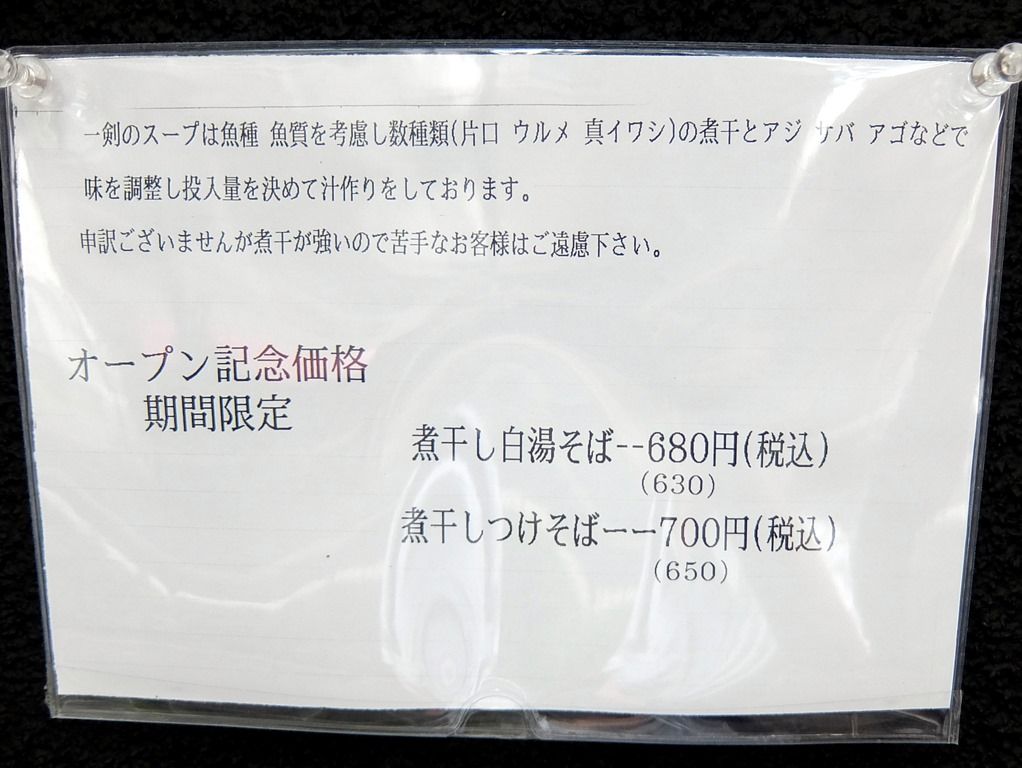 2016年8月2日、本日オープンの新店「煮干し中華そば 一剣」へ。