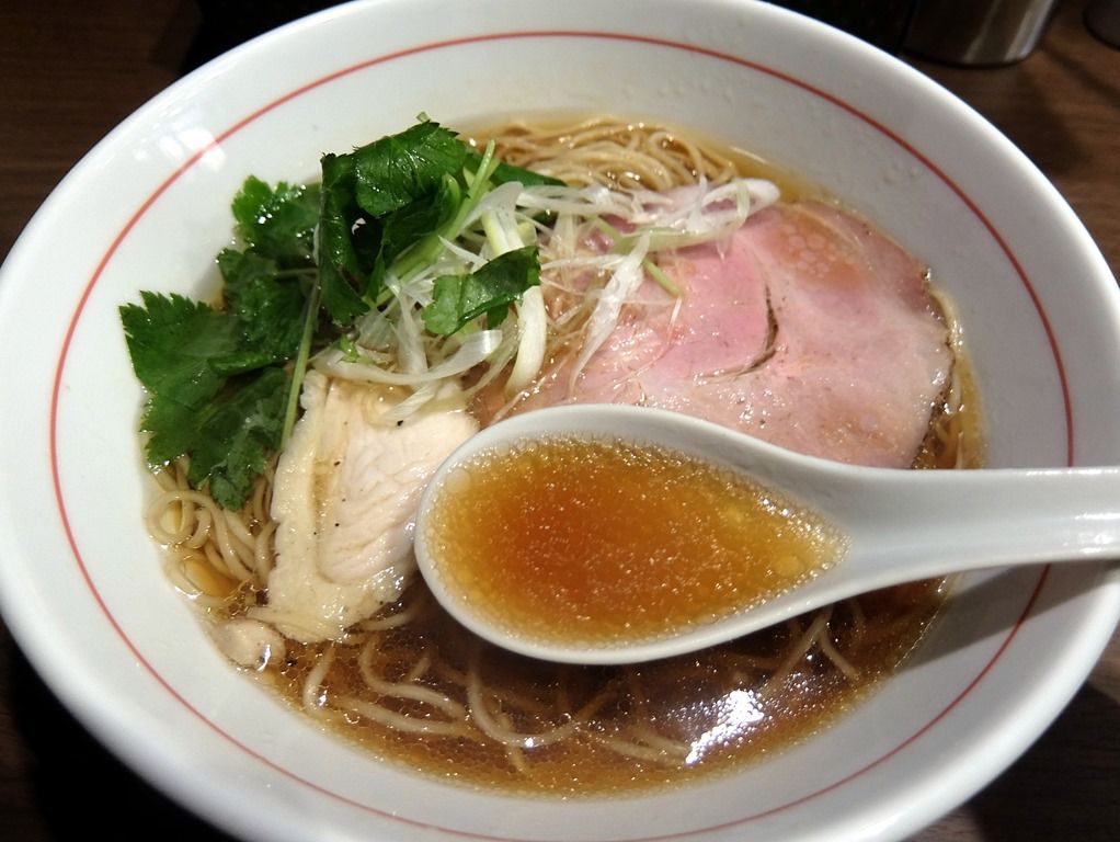 スープはさらさらの清湯醤油味。魚介、特にサンマが香る和風出汁に甘めのカエシ、抜群に風味の良い香味油でキレッキレな和風出汁。お聞きしたところ、動物性不使用で魚介出汁オンリー、本日は鯖・秋刀魚・鯵の組み合わせ。唯一香味油だけは、鶏油を使用しているそうです。懐かしさとキレのある味わい、優しさとシャープさが同居した、そんな味で凄いわぁ!これは美味しい!