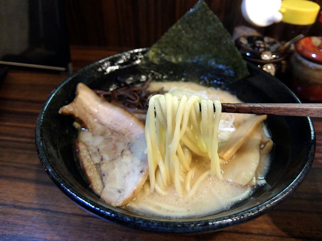 麺は中太ストレートタイプ。コシの強いしっかりとした麺で、細身のうどんのような食感。スープに勝っちゃってる感もありますが、麺が旨いので食べた感はあります。