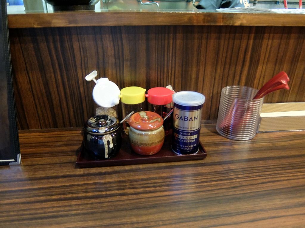 卓上調味料は、胡麻、酢、ラー油、おろしニンニク、豆板醤、GABANブラックペッパー。