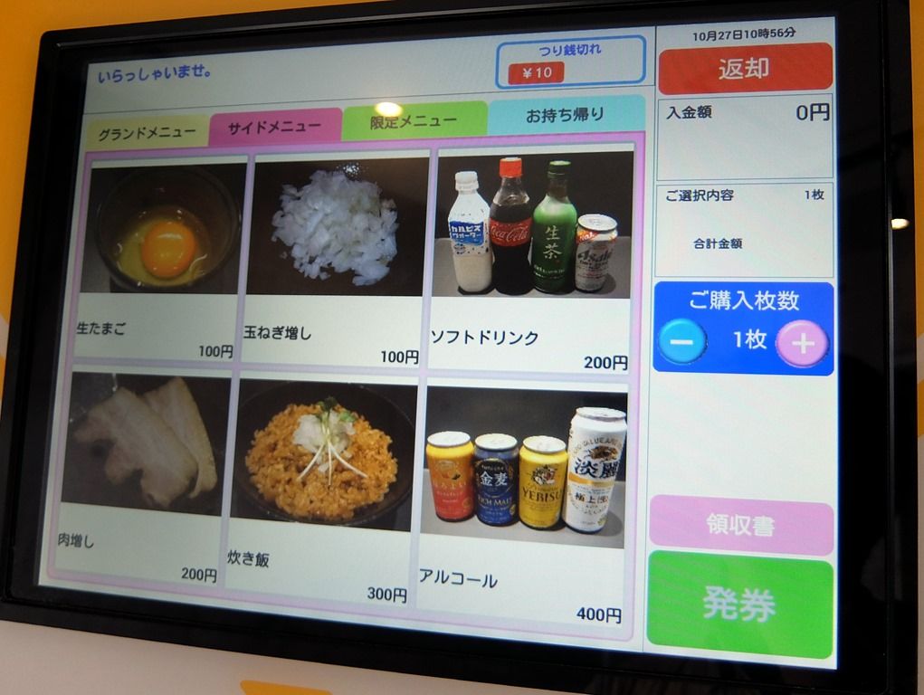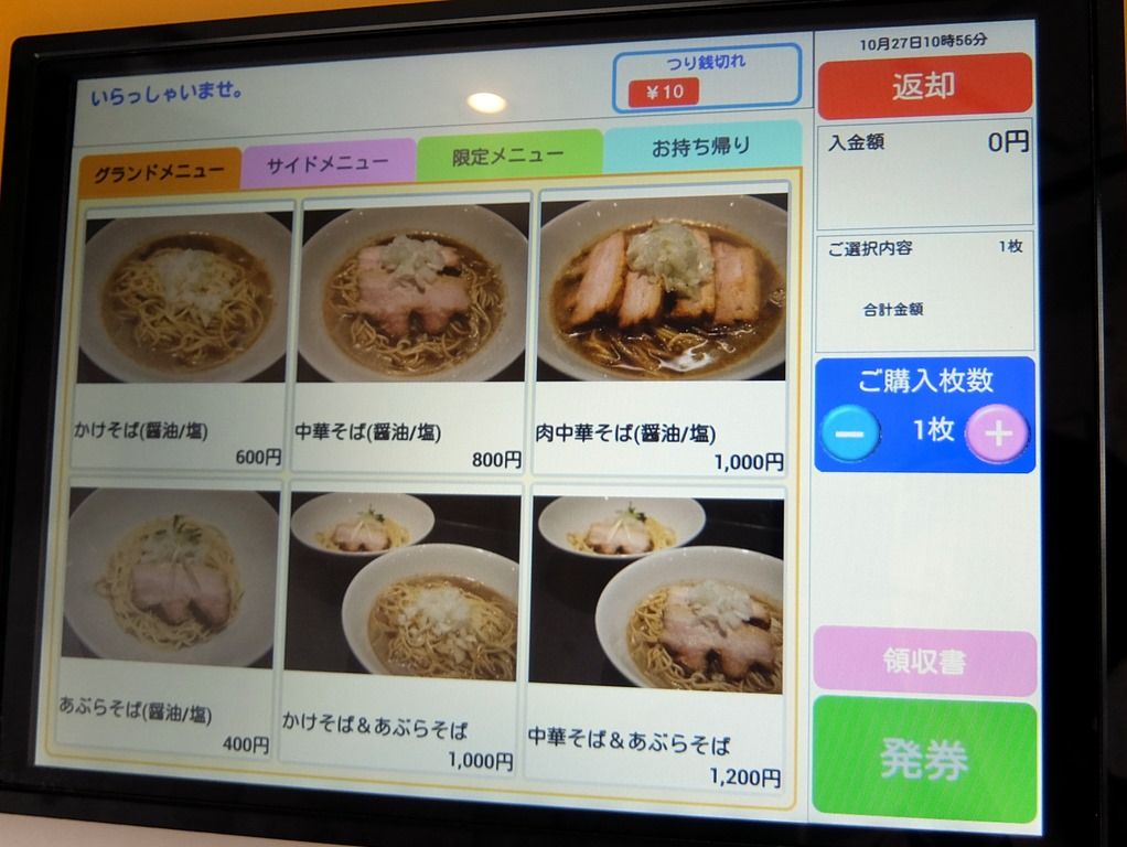 券売機のメニュー構成が一部変更となっていて、かけそば&あぶらそば1000円、中華そば&あぶらそば1200円が追加となっています。