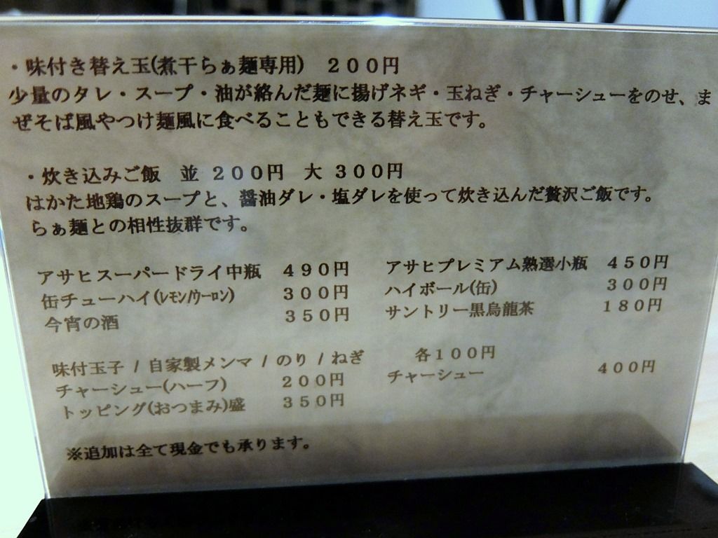 20:20頃到着で、店内満席外待ち2に接続。なんと私で売り切れ終了と、まさかのラス客でした(^_^;) ってことで、店頭画像は、閉店後看板が消灯した後^^;