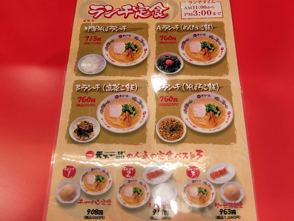 メニュー本2ページ目「ラーメン定食」