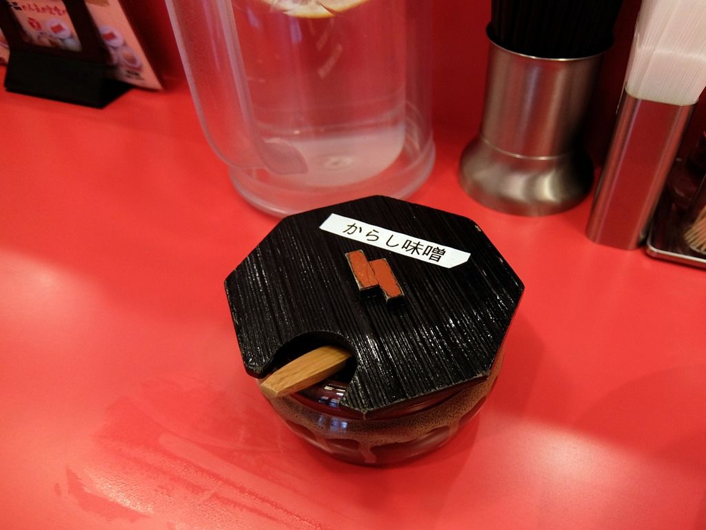 味変のマストアイテム「からし味噌」は、ちょっと離れた地点にありました(^_^;) そして待つことしばし「中華そば こってり(並)」完成でーす♪