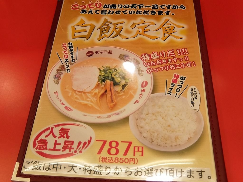 メニュー本8ページ目、「白飯定食」。