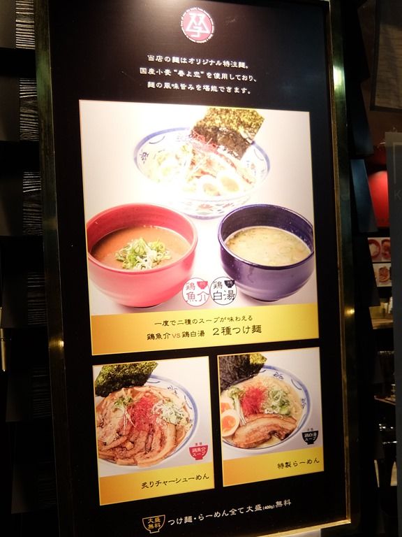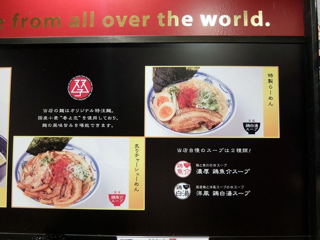 こちらの特徴は、濃厚な鶏・魚介のWスープと、あっさり洋風な鶏・洋風スープのWスープの2種類をスタンバイ。つけ麺・らーめんそれぞれで、鶏魚介・鶏白湯が選択肢があります。