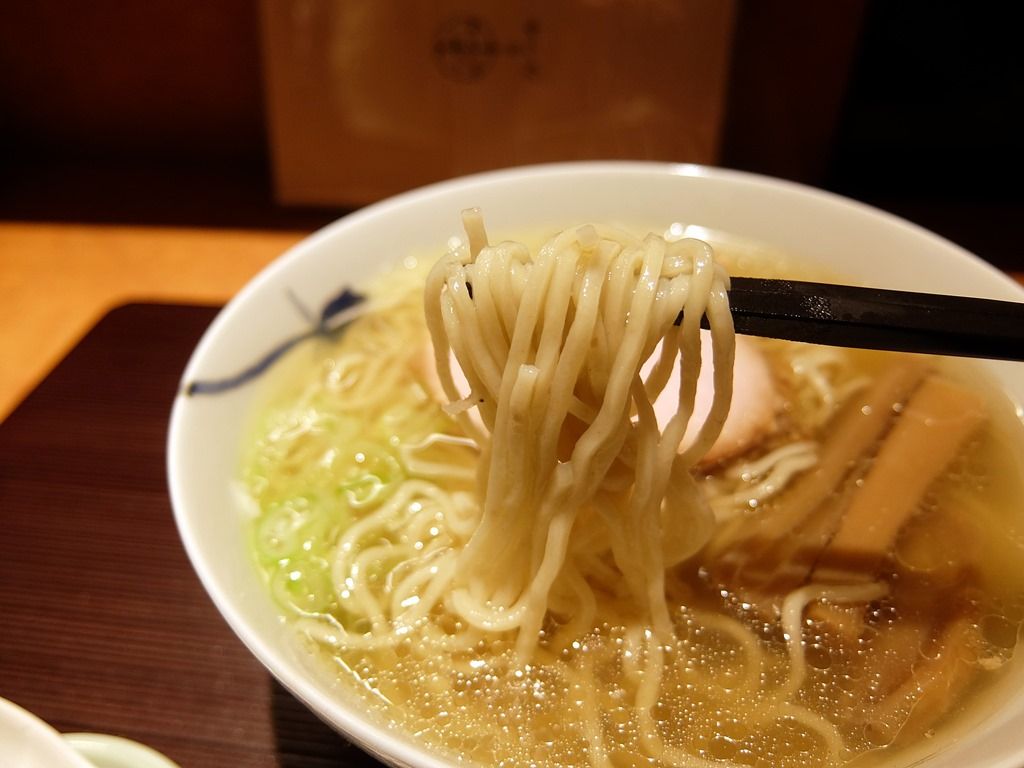 スープは、さらさらの清湯塩味。塩味も醤油味も鶏と魚介のWスープだそうですが、塩味は醤油味よりも魚介を強めに効かせたあっさり仕立て。塩ダレは、魚介スープをベースにしてるとのこと。鶉の濃厚な味噌味とは真逆な淡麗塩スープ。あっさりながら出汁の旨味が、十分に感じられて、とても美味しい!