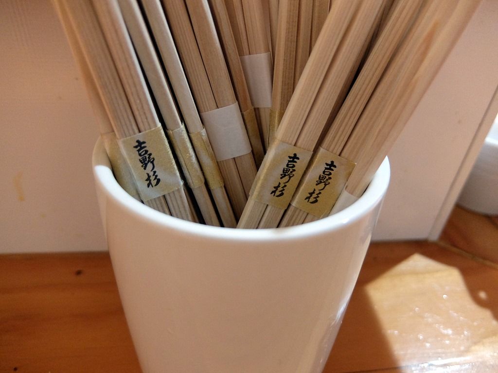 BGMはジャズ。箸は吉野杉の割り箸。