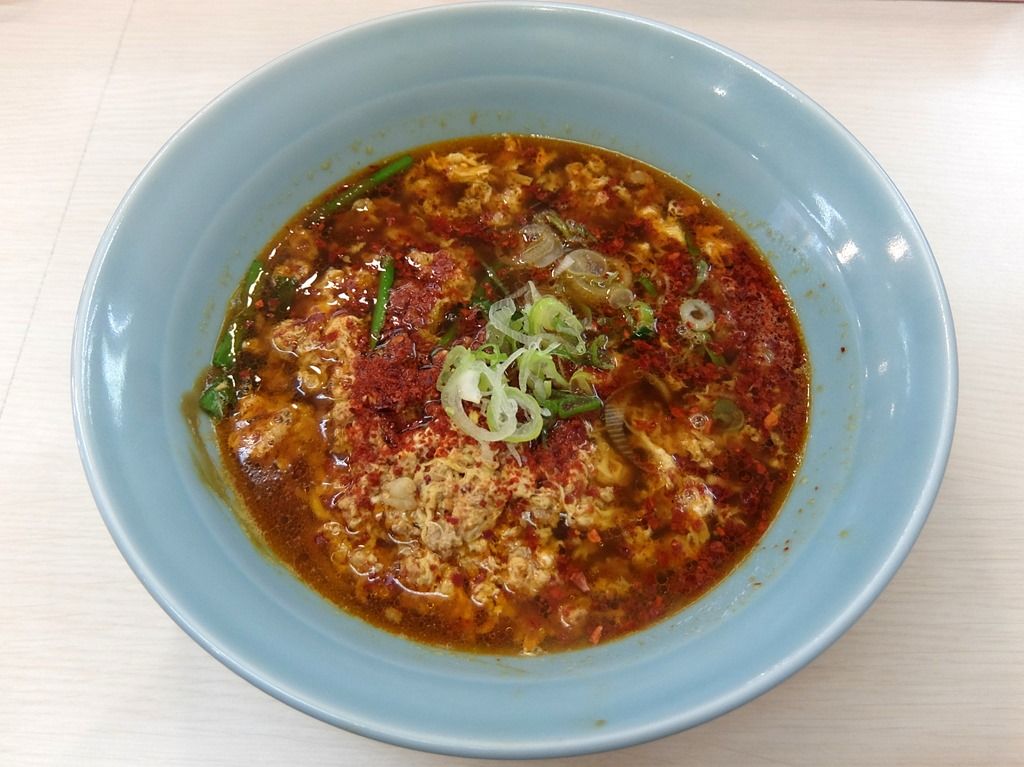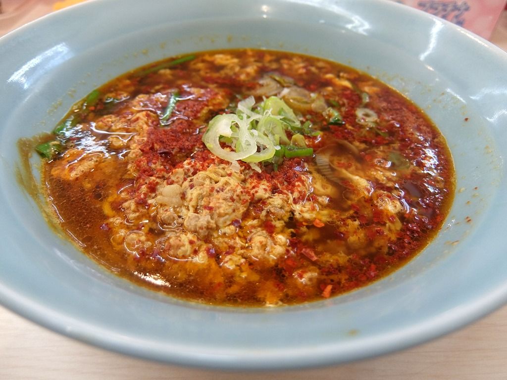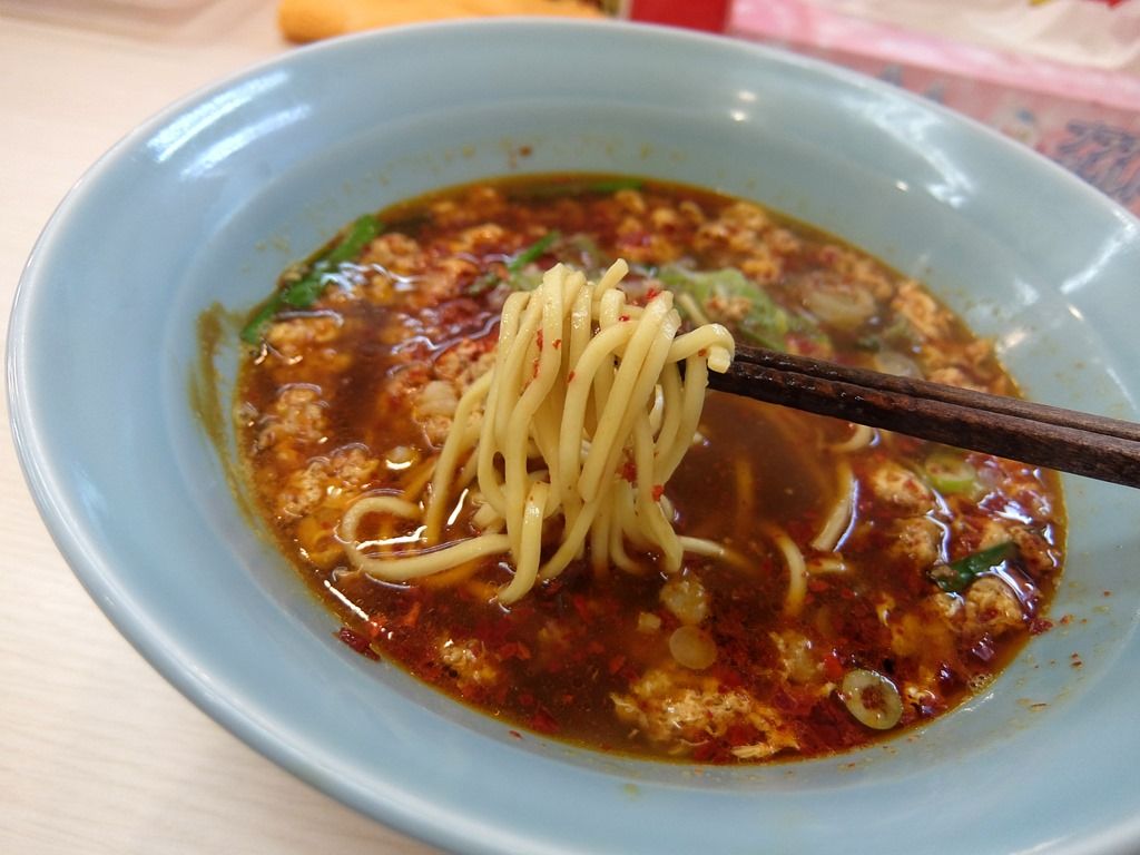 スープはさらりとした鶏がらベースらしい醤油味。唐辛子たっぷりに見えますが、2辛指定だと、ピリ辛の程よい辛さ。