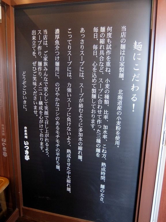 入り口入るとすぐ右手の壁に、麺のこだわりの薀蓄掲示。