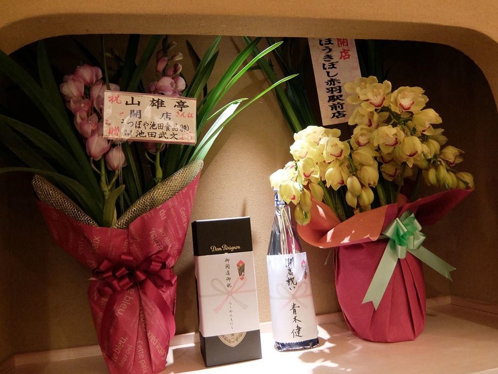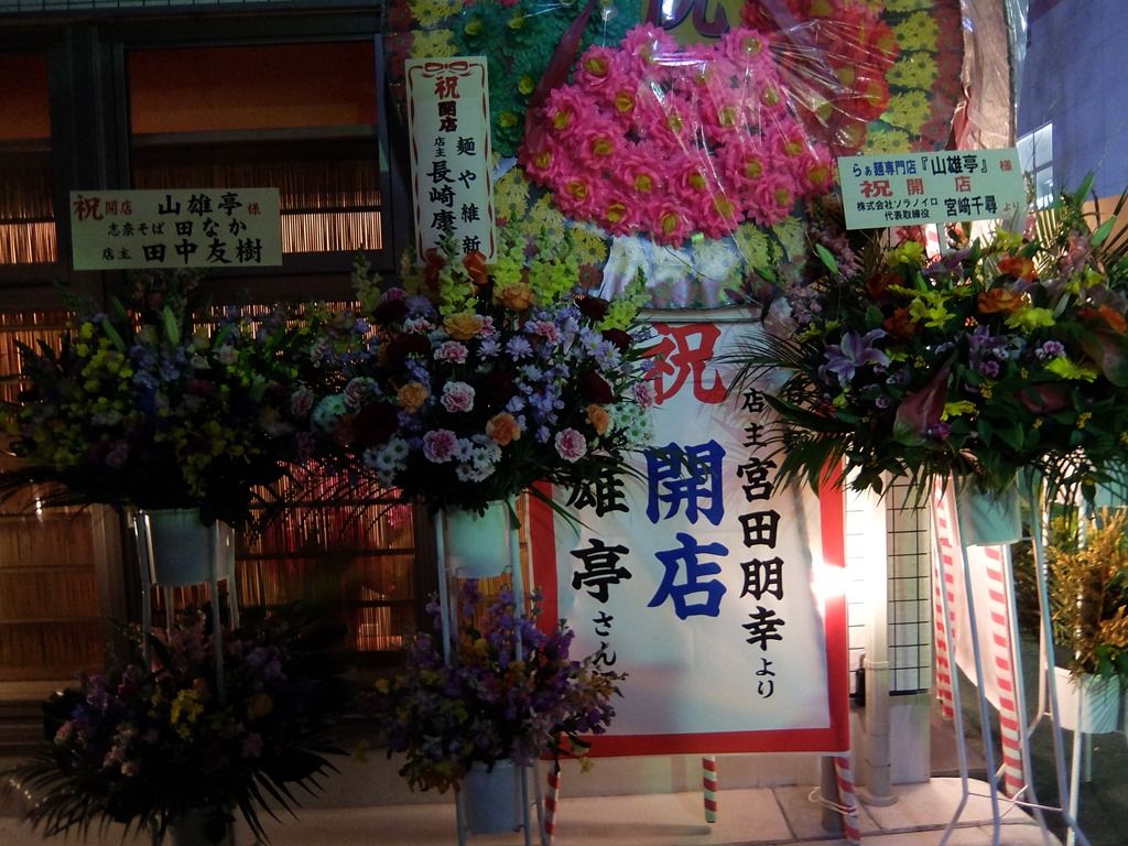 店頭には山のような開店祝花。気づいたところでは、我武者羅、飯田商店、