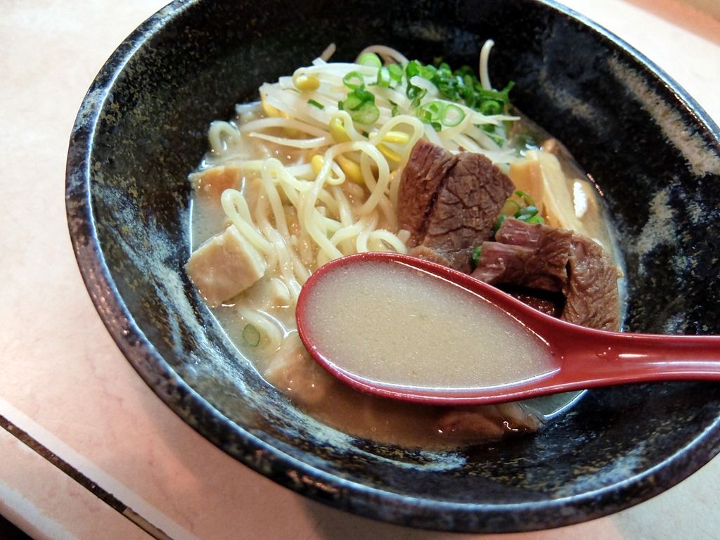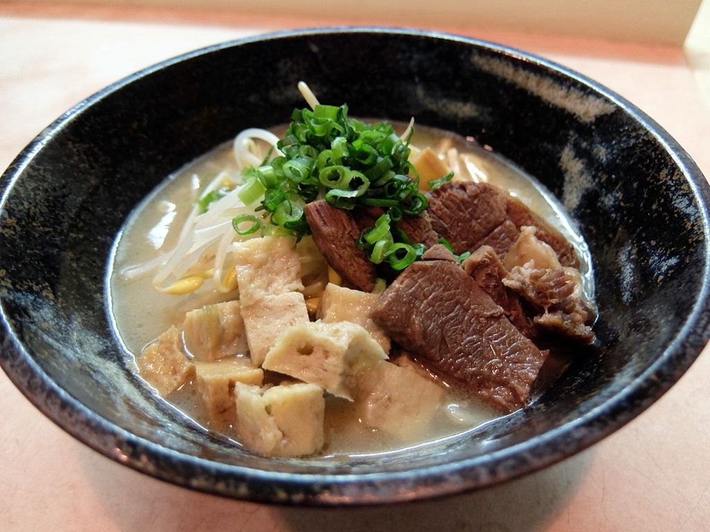 具は、ラム肉チャーシュー、メンマ、豆もやし、お麩。