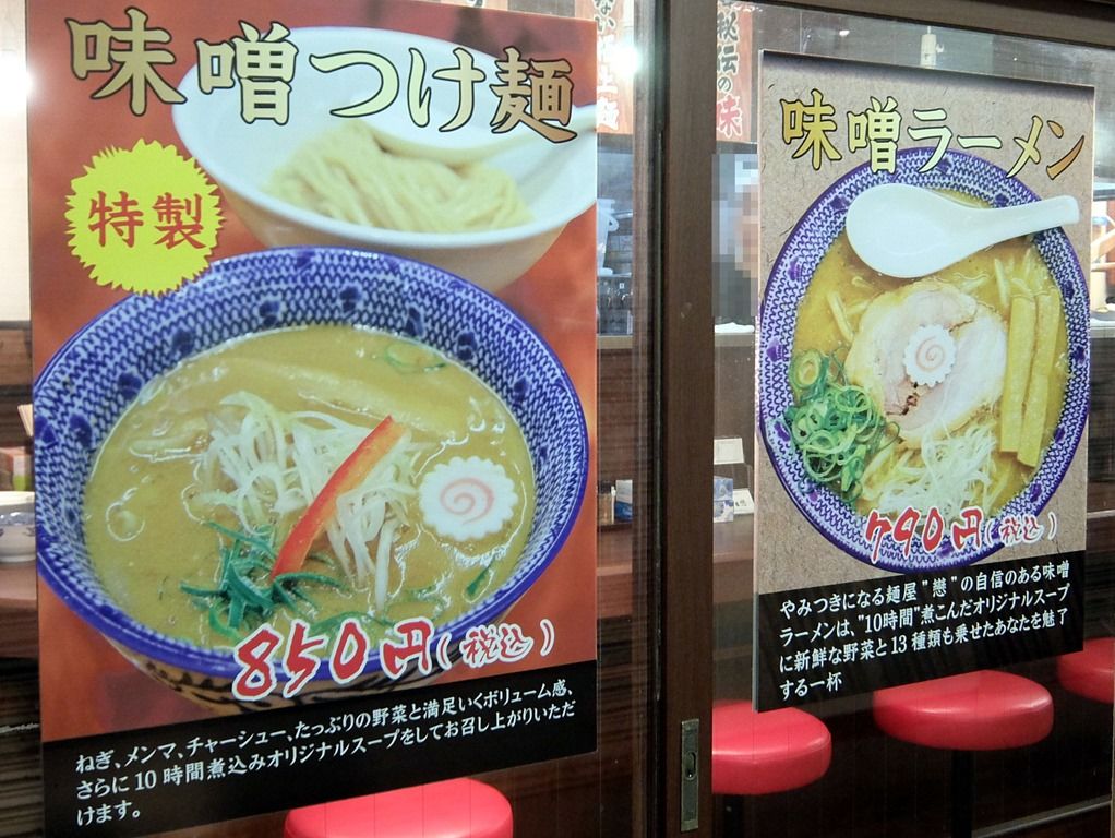 主なメニューは、味噌ラーメン790円、味噌つけ麺850円、他。