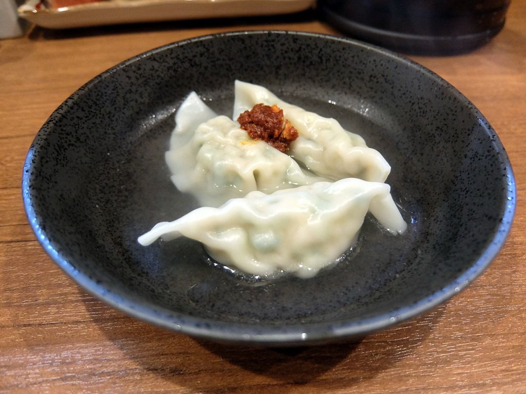 まずは、26日〜28日の3日間サービスの「ミニ水餃子」到着。ニンニク不使用でそのまま食べれるように味付き。辛味味噌がナイスアクセント