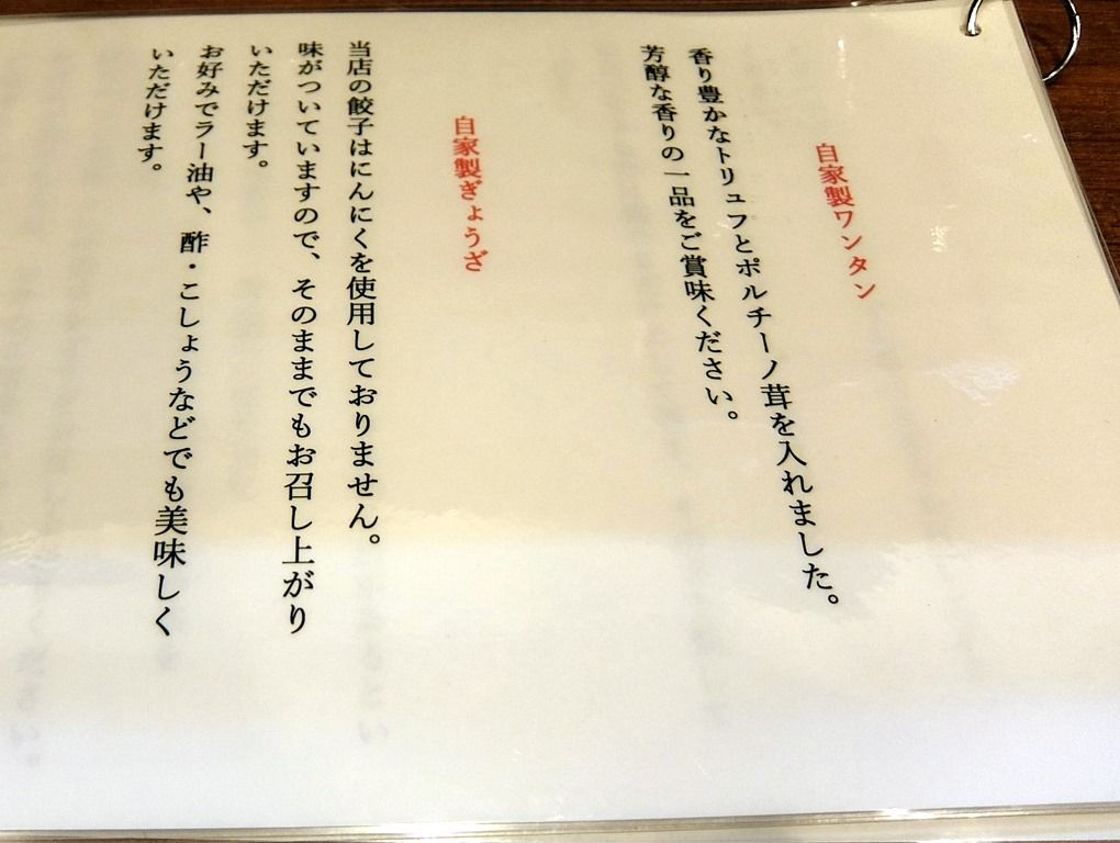 主なメニューは、醤油らー麺680円、塩らー麺750円、味噌らー麺750円、坦々麺750円、醤油つけ麺750円、他。醤油らー麺は従来からの定番、塩らー麺・坦々麺は新作。本日はその3品のみの提供。オーダーは、坦々麺と迷って塩で。
