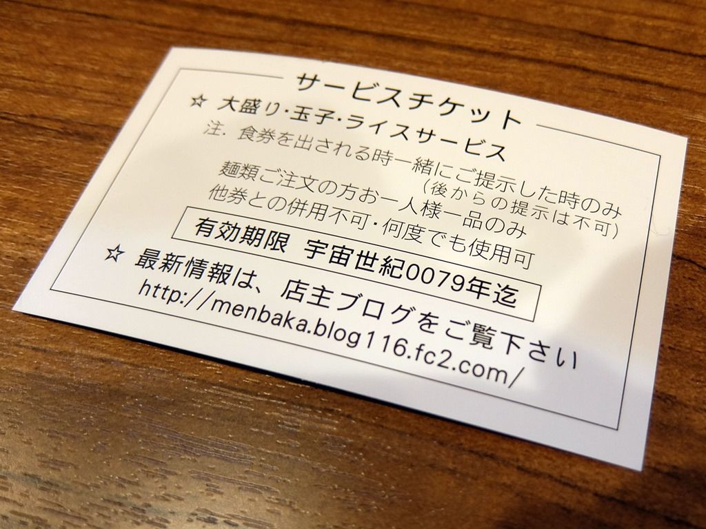 オープン記念でしょうか、(トッピング)永久無料サービス券配布中。