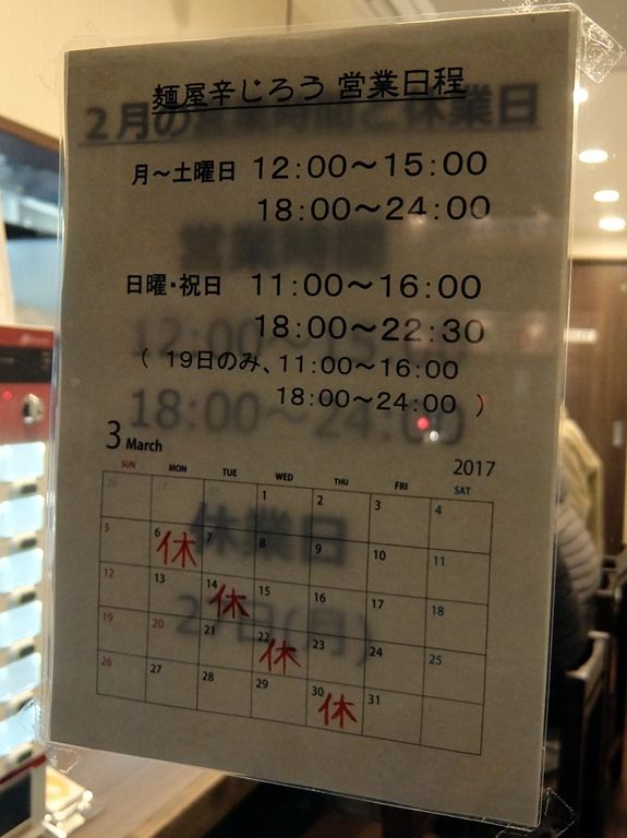 2017年3月3日、平井の新店「麺屋 辛じろう(しんじろう)」へ。