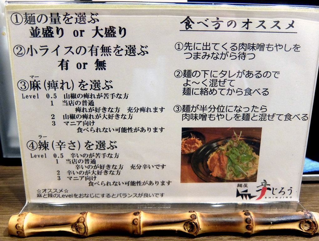 まず大盛無料で普通盛りか大盛りか、ライス無料で有りか無しか、辛さと痺れの強さをどうするか。