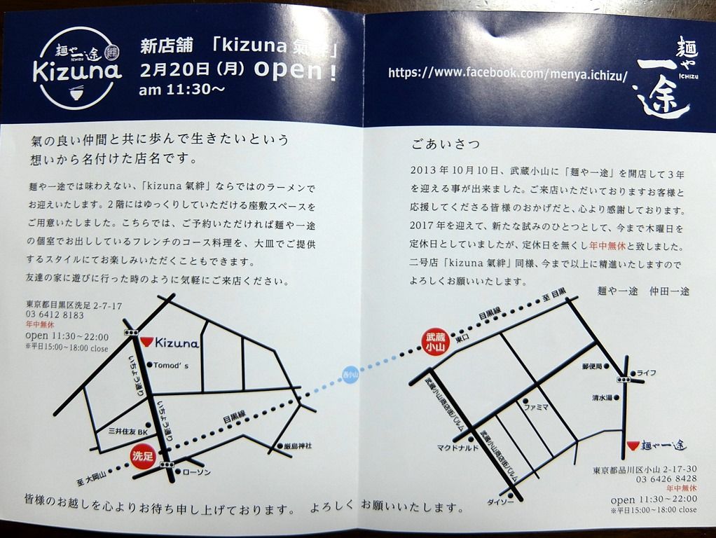 2017年2月26日、洗足の新店「麺や 一途 Kizuna 氣絆」へ。