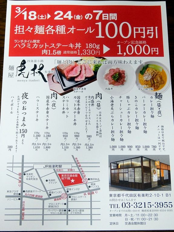 2017年3月18日仏滅w、本日オープンの新店「四条富小路 麺屋虎杖(いたどり)有楽町」へ。