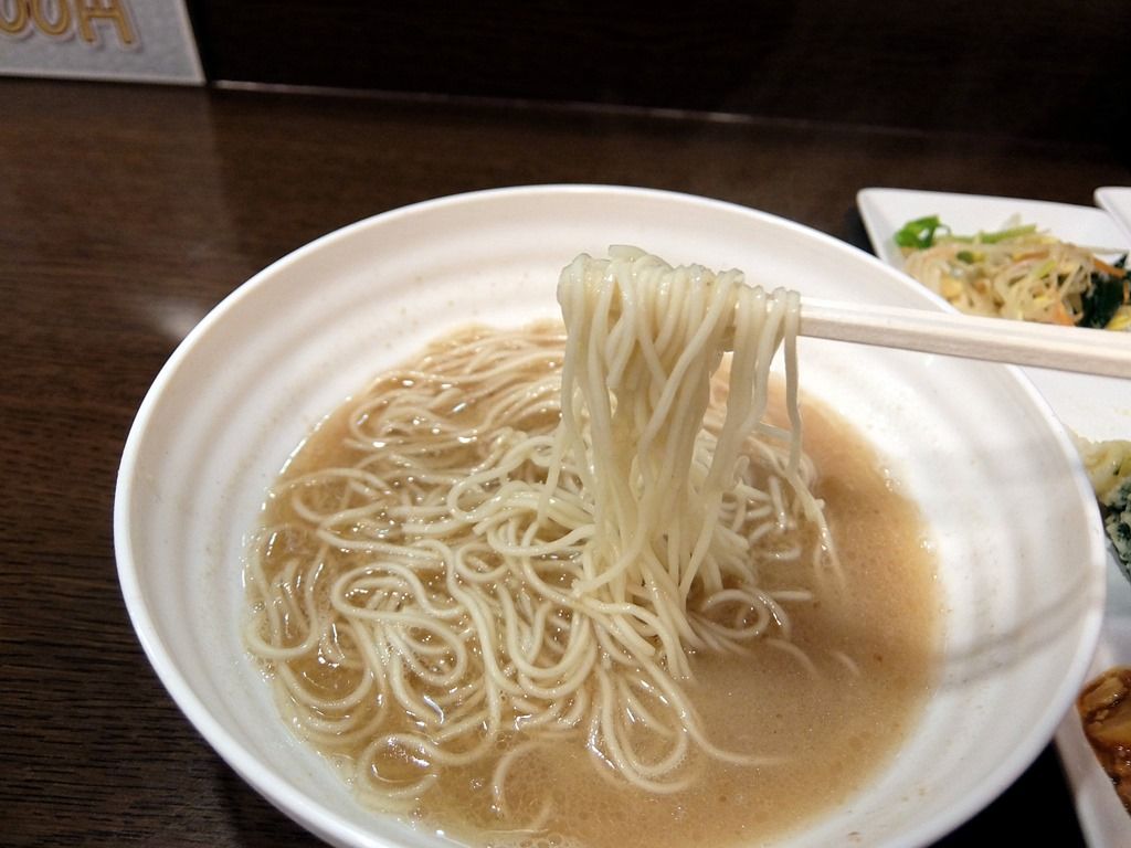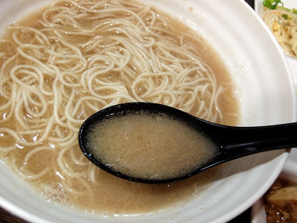 スープは、さらさらの豚骨醤油味。やや旨味過多な気もしますが、豚骨をしっかり炊き出した感のあるスープでこれは美味しい!