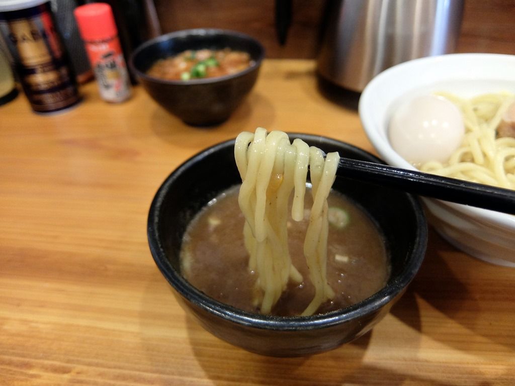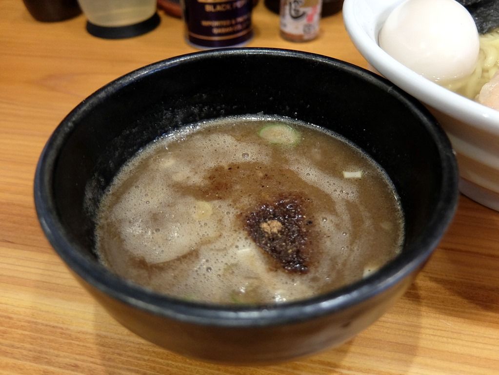 つけ汁は粘度の低いシャバ系。オーソドックスな豚骨魚介醤油味でほのかな酸味が程よいバランスで調和。麺はストレート中太タイプ。太すぎず細すぎずの食べやすさ重視型。後半底に仕込まれたらしい柚子が効いて、爽やかに味変。濃すぎないつけ汁と太すぎない麺で、最後まで飽きずに軽快にいただけます。