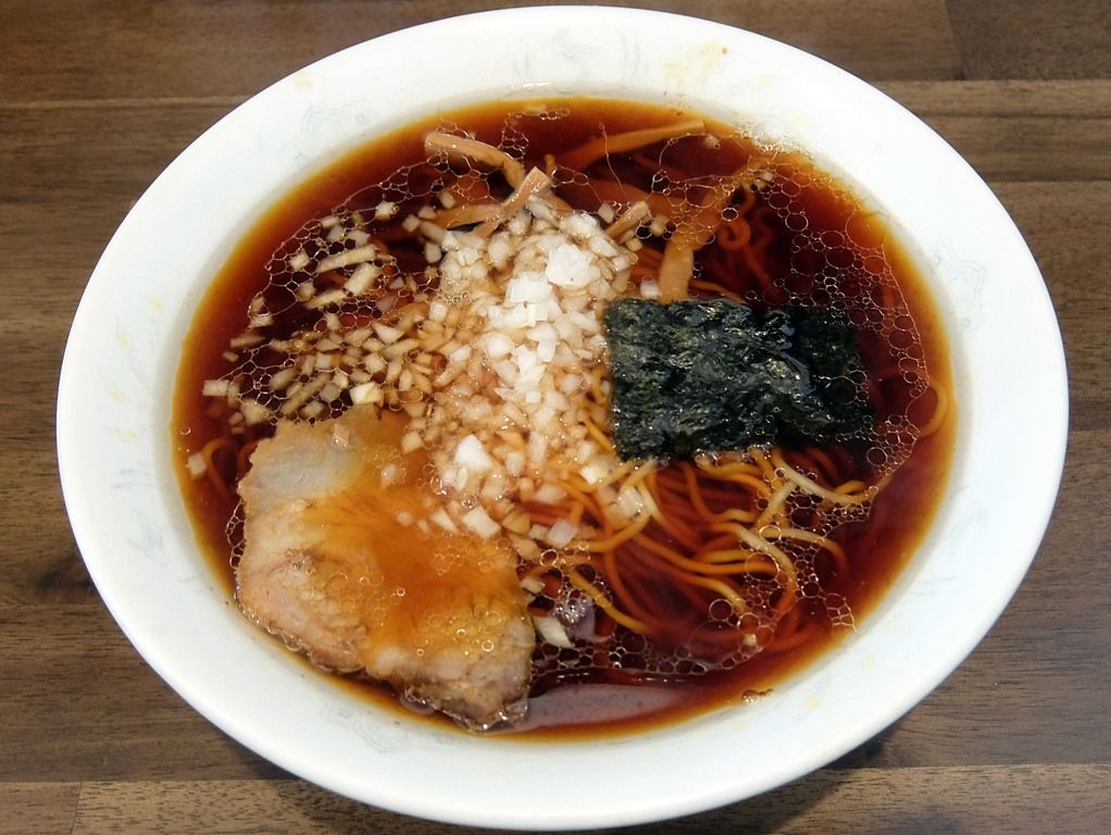 具はチャーシュー、メンマ、海苔、きざみ玉ねぎ。「THE八王子ラーメン」と呼びたくなるような端正なビジュアルで、美しい意外にないレベル!