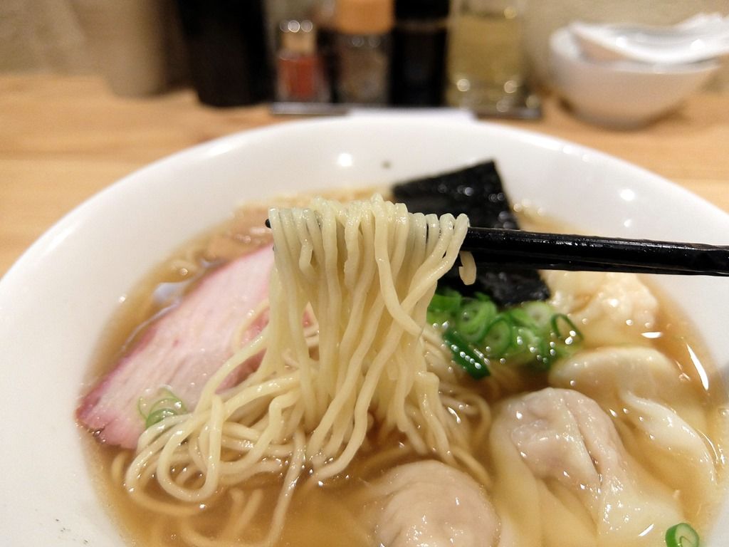 麺は菅野製麺製の細かい縮れのついた細麺。八雲では大釜でゆでて平ざるで麺上げですが、こちらではテボでゆでて平ざるに移して湯切り。八雲の方が固めのゆで加減で、こちらの方がしっかりとゆで上げた感じ。好みの範疇ですが、個人的にはこちらの方が好きかも。