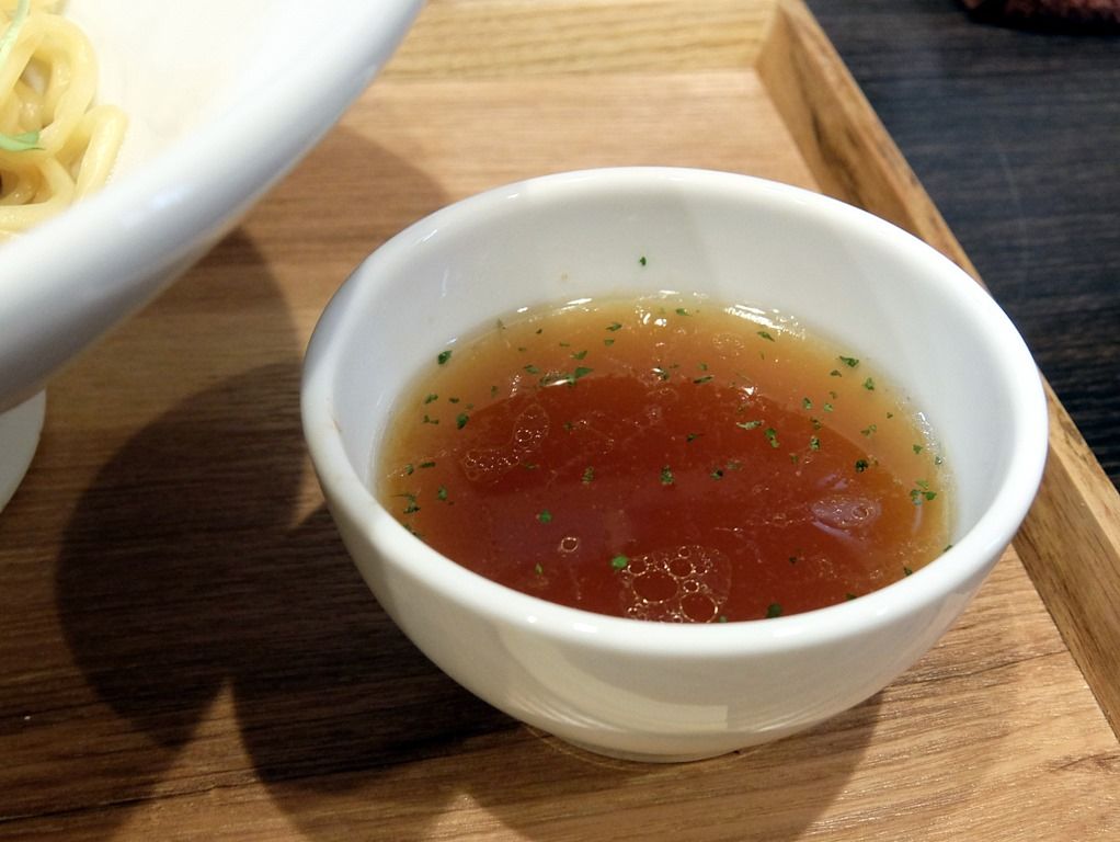別添えのスープは洋風の濃いコンソメスープ。パセリのみじん切りがナイスアクセント。単品でも旨くて、箸休めと口中リフレッシュに最適!