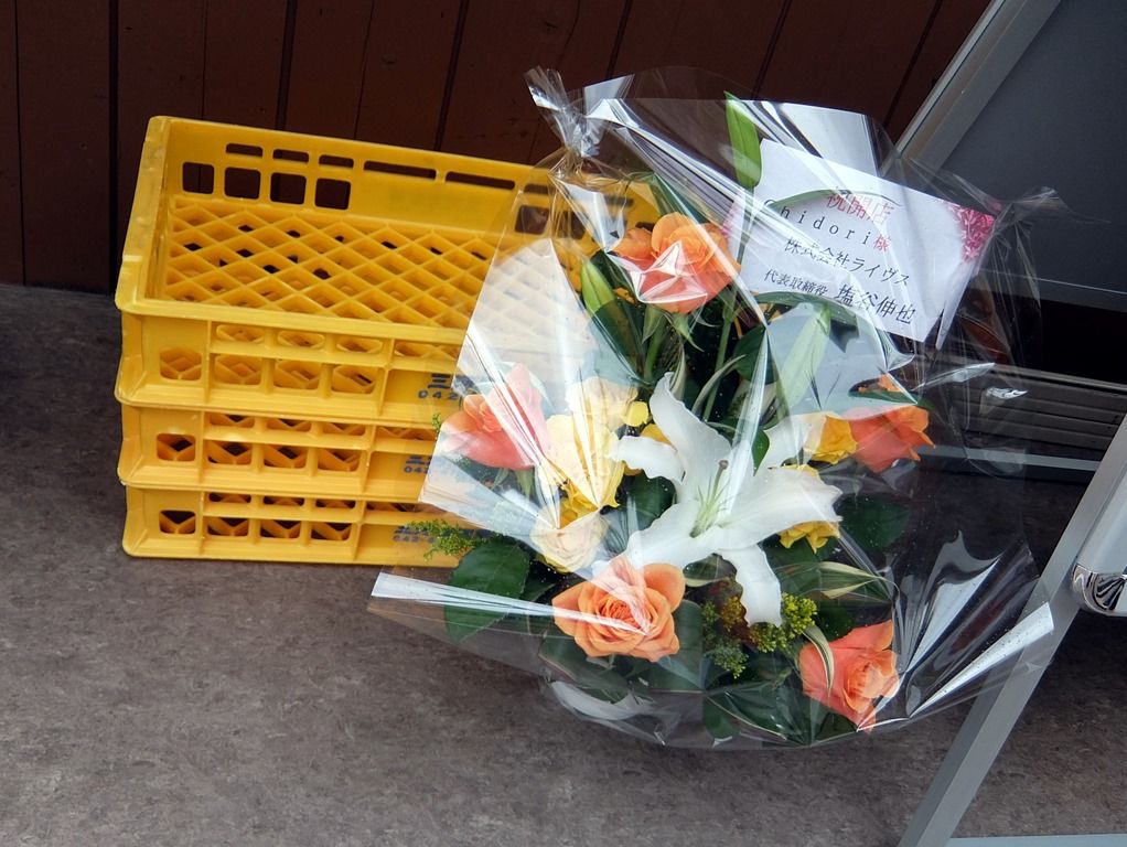 店頭には開店祝い花。三河屋製麺からの花がありました。
