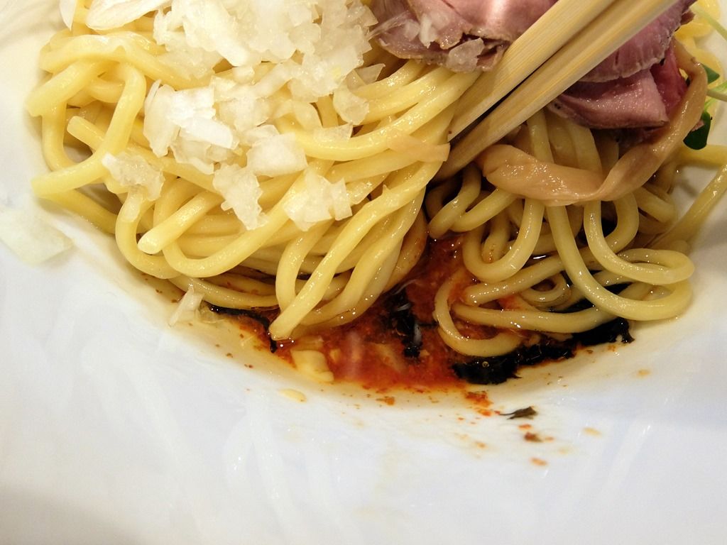 よ~く混ぜると全体が真っ赤に染まっていかにも辛旨そうな出で立ちに。