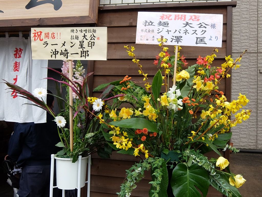 店舗をぐるりと取り囲む様に開店祝花がディスプレイされていて、脇の花はご近所さんにだいぶ収穫されてました^^; Fromで気づいたところでは、星印、