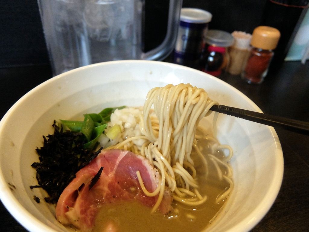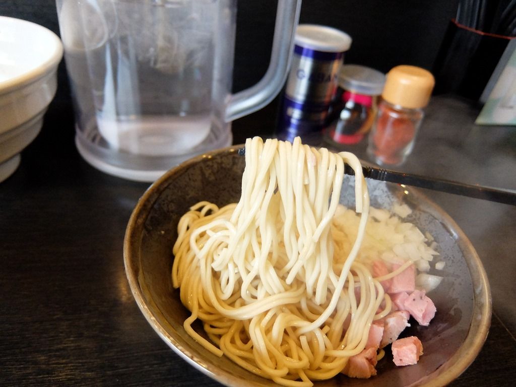 麺は村上朝日製麺製のストレート細麺。パツパツどろろではない、エレキギターの弦の様なパッツンパッツンの剛麺で、液化コンクリート状のスープがパッツンと受け止めます。このスープあってこそのこの麺って感じで、美味しい!