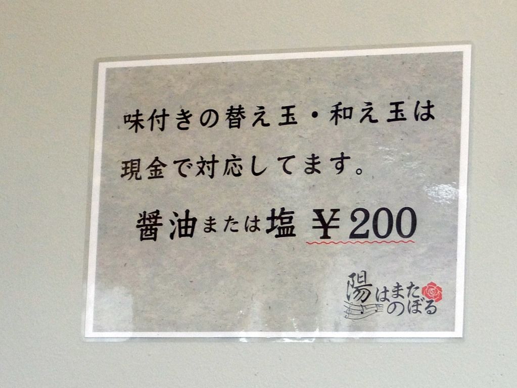 和え玉(醤油・塩)200円は現金で。