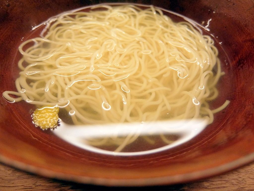 麺上の具は柚子皮片のみ。