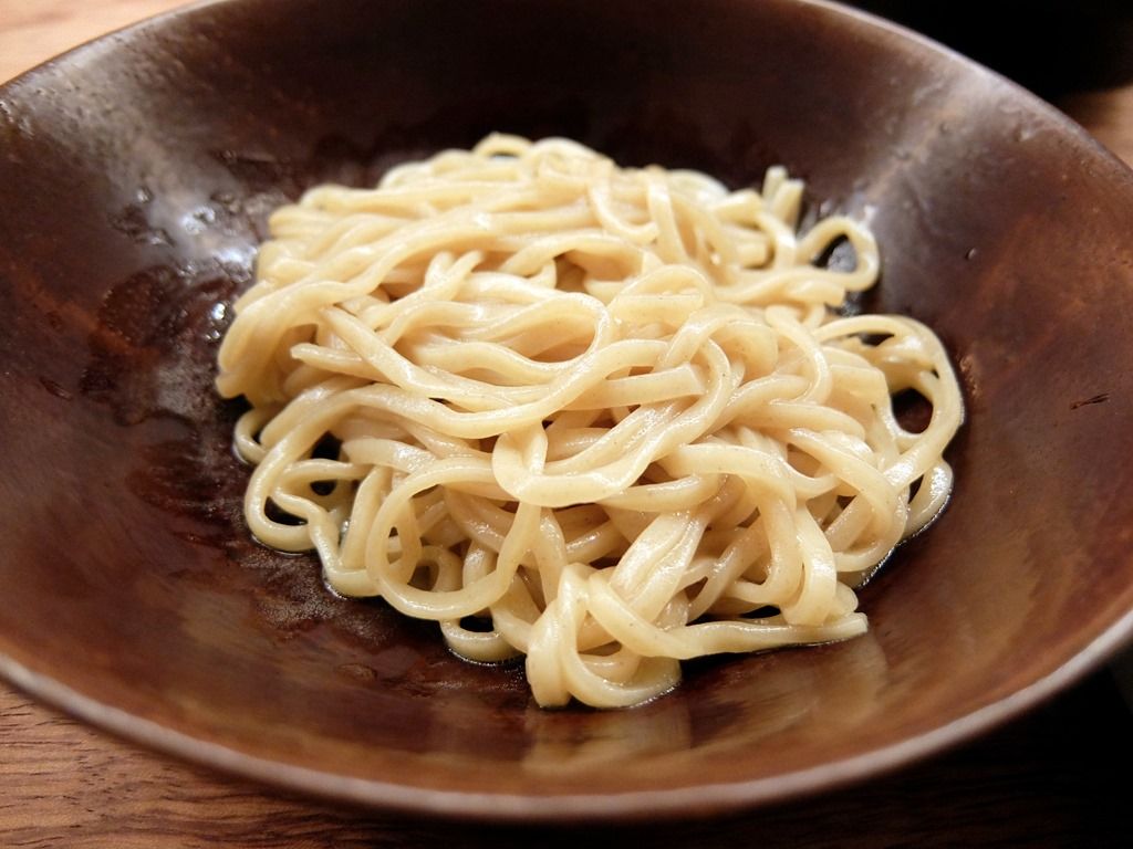 「澄まし麺」は細麺でしたが、「醤油かけ麺」はストレート太麺。