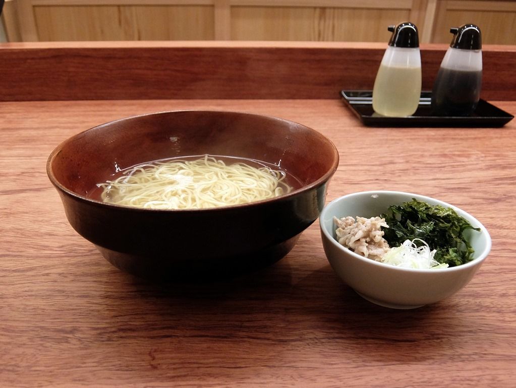 オーダーは、迷った挙句「澄まし麺 半盛」・「醤油かけ麺 半盛」・「名物 鴨だしご飯」のフルコースでw