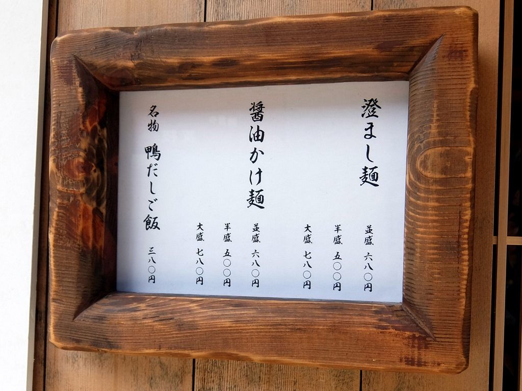 そのメニューは、澄まし麺 並盛680円、醤油かけ麺 並盛680円、名物 鴨だしご飯380円。麺類は半盛・大盛あり。