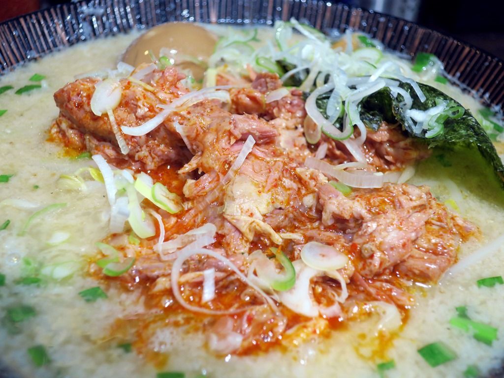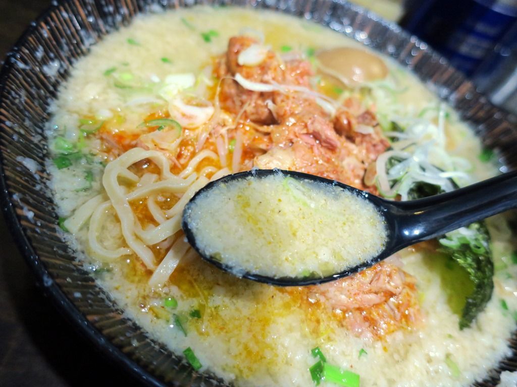 ですが、まったくくどくなく背脂に自然でほのかな甘みとコクがあってウマイ!ホルモンからピリ辛のタレがスープに溶け出して、背脂みそスープとえもいわれぬハーモニーを生み出します。