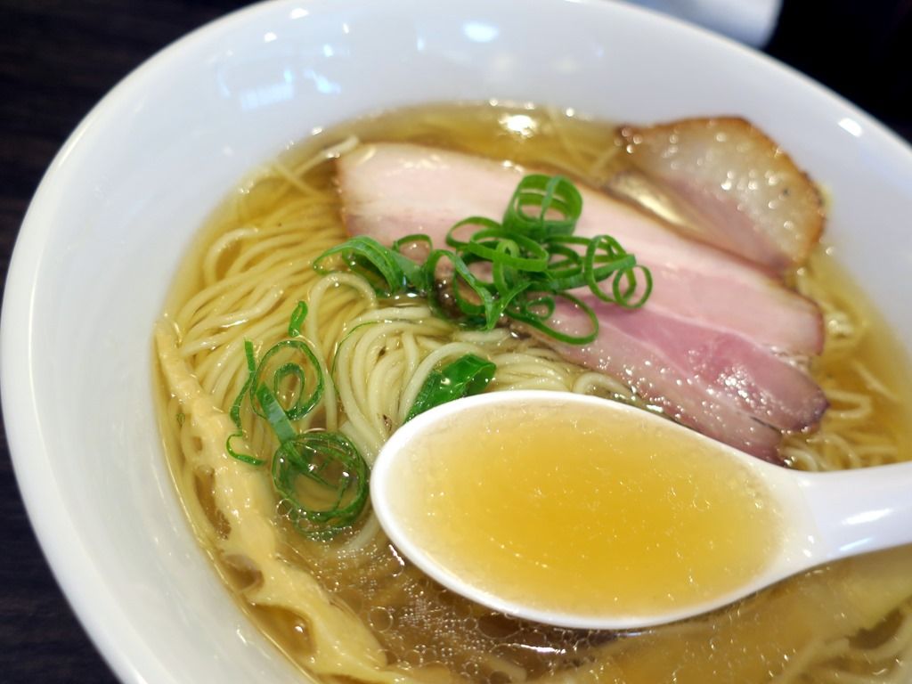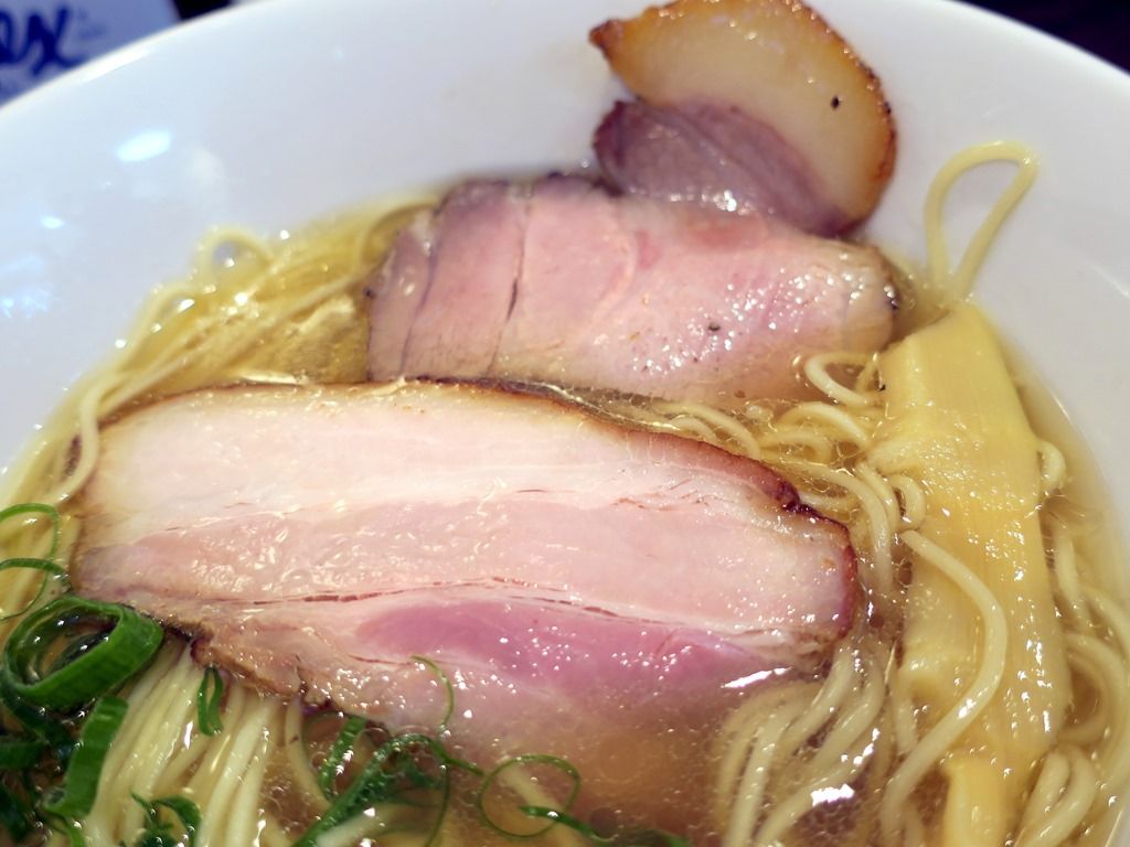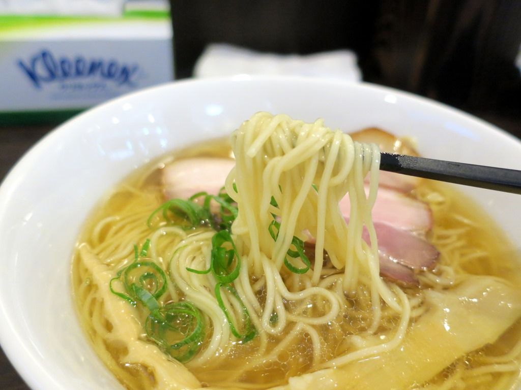 スープはさらさらの清湯塩味。豚骨を白濁させずにじっくりと炊いた淡麗豚骨清湯で、一口目から自然で優しい旨味あふれる味わい。これは素晴らしい!噂には聞いてましたが、いきなりのハイクオリティに舌舐めずり。美味しい!