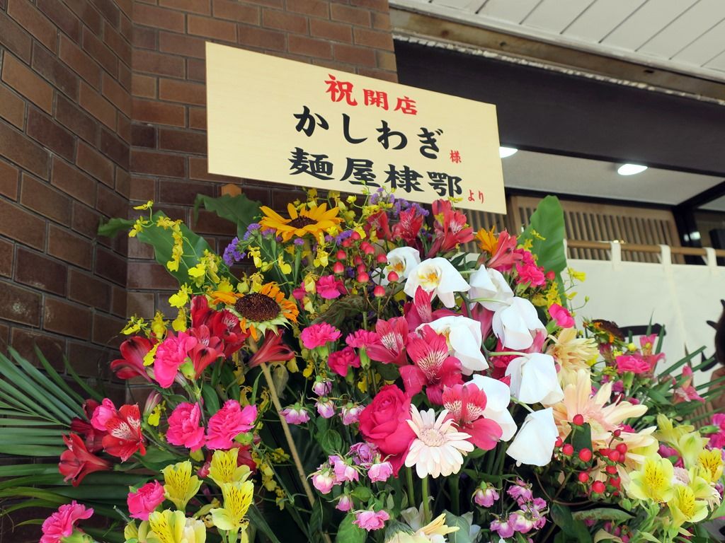 店頭には開店祝花。棣鄂からの花がありました。