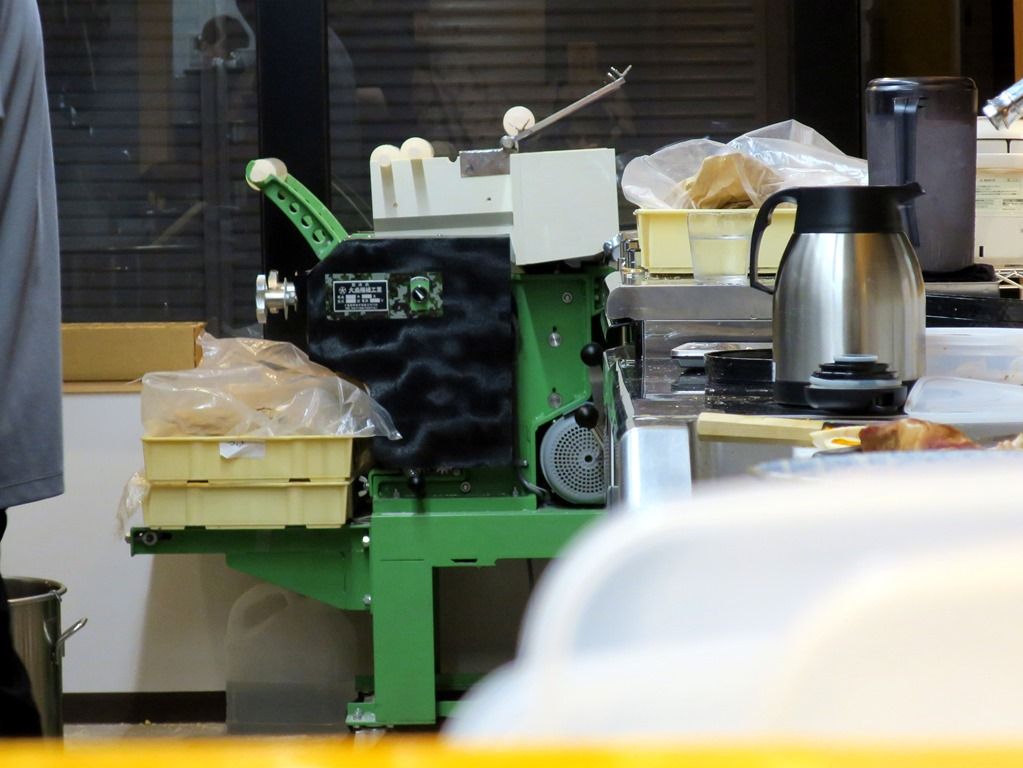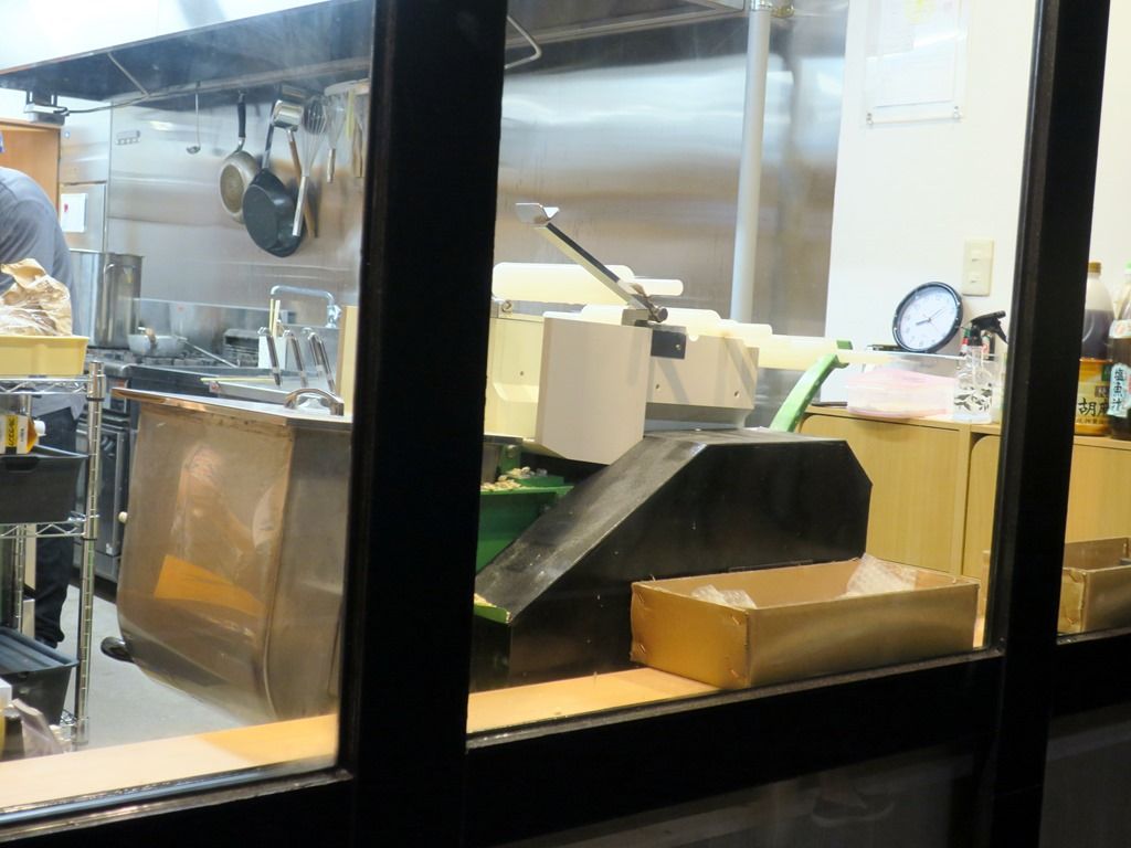 店名の由来は店主さんの名前とか。店舗正面厨房側はガラス張りで外から店内の様子が良く見えます。窓際に製麺機が鎮座していて、自家製麺であることを誇示。