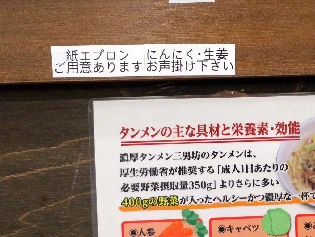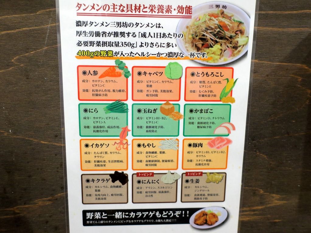 からあげはあるけど餃子がないので、タンカラビーはOKで、タンギョービーは不可。オーダーは、ベーシックな「濃厚タンメン」で。
