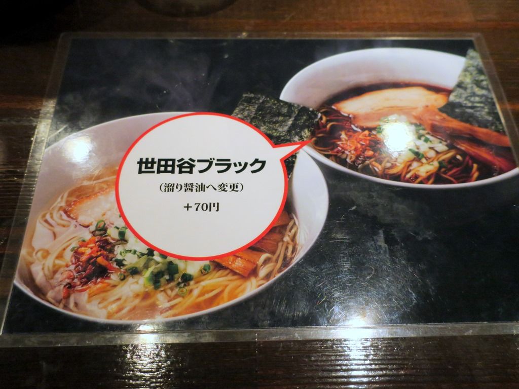 券売機はなく先会計制。主なメニューは、白醤油らーめん 小盛り140g 730円、世田谷ブラック(溜まり醤油に変更)ブラス70円、他。つけ麺は7月からの提供予定。