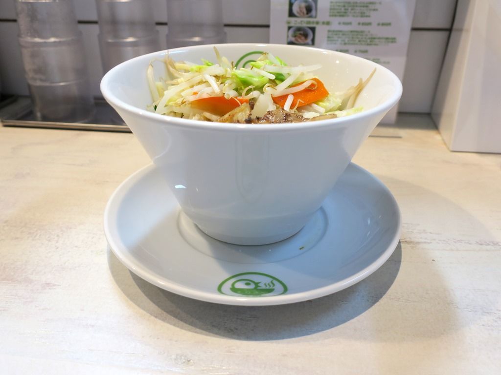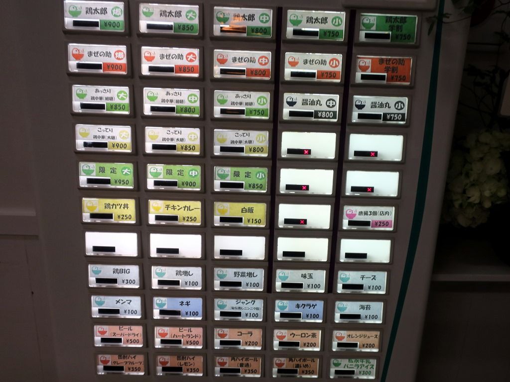 食券を渡すと無料トッピング、「鶏太郎」は脂の多さ・味の濃さ・刻みニンニクの有無を、「まぜの助け」の場合、刻みニンニクの有無を聞かれます。