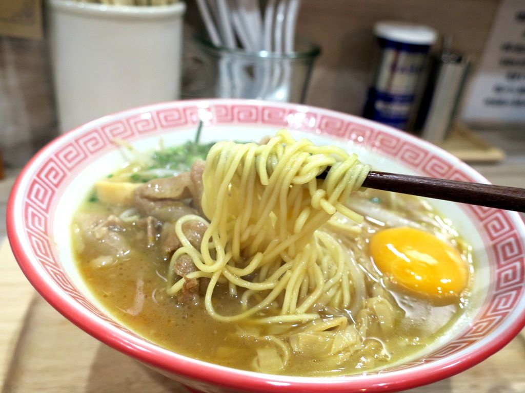 麺は、ほぼストレート中太タイプ。(追記:棣鄂製とのことです)いったんリメイクしたタイムロスもあるかもですが、結構やわ目のゆで加減。ですが、個人的には麺の旨さが良く出てると思います。